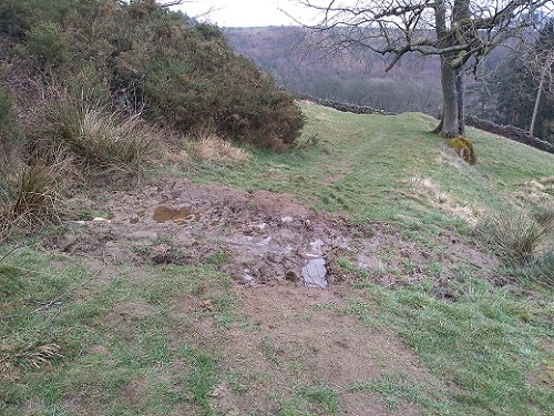 There is a wet patch where an old metal drainage pipe crosses the footpath at SK 2638 9303 The pipe is clearly inadequate for the job. The wet area is wide enough to be awkward for the less agile & elderly. Can a new pipe be put in & covered over.