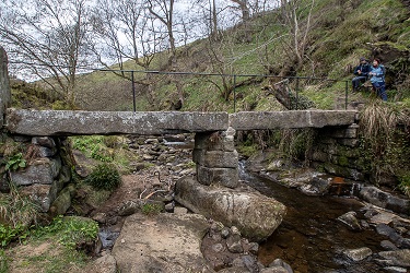 'The Hebble Hole bridge is a grade 2-listed historic stone clapper bridge which carries the Pennine way across the stream in Colden Clough, a deep valley west of Hebden Bridge in West Yorkshire at grid ref. SD 967282. The bridge dates back to the seventeenth century.